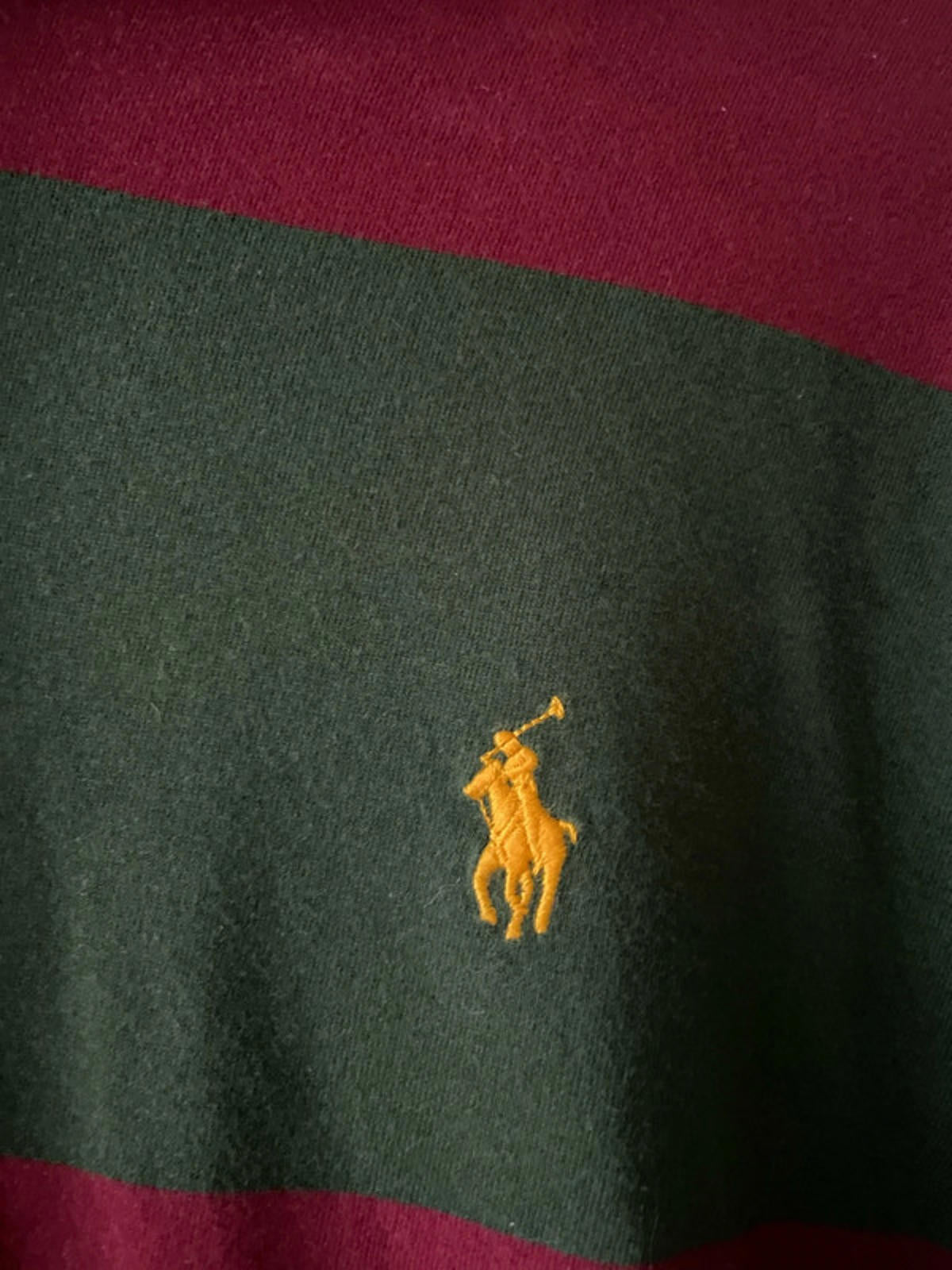 Men’s Ralph Lauren Stripped Hooded Rugby Shirt Top In Burgundy/Green - Medium - 2532